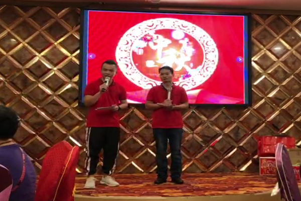 那么我們來回顧一下,在晚會開始前的兩天,我們的總經(jīng)理想到了中秋晚會肯定得由主持人啊,讓家人們來主持表現(xiàn)一下自己,鍛煉演說能力,于是把這個寶貴的機會讓給了全公司最不愛說話,最害羞的兩位男生來,在這里小編可以說很多人都和他們一樣第一次上臺會很緊張,所以我們不能笑他們的表現(xiàn)很差,而是應該一次一次的鼓勵和陪伴,大家可以看以下他們晚上加班加點的排練,從最開始連上臺都不敢的他們,上了臺又滿臉發(fā)汗的他們到站到舞臺中間滿臉自信的他們,這背后是一個多么艱辛的過程啊!夜晚排練的時候陪伴著他們的是蚊子和老鼠,但是他們始終堅持著,我們應該為他們感到驕傲,感謝他們?yōu)槲覀冾E<胰碎_了一個美好而又美滿的晚會!以下是兩位主持人!哈哈!