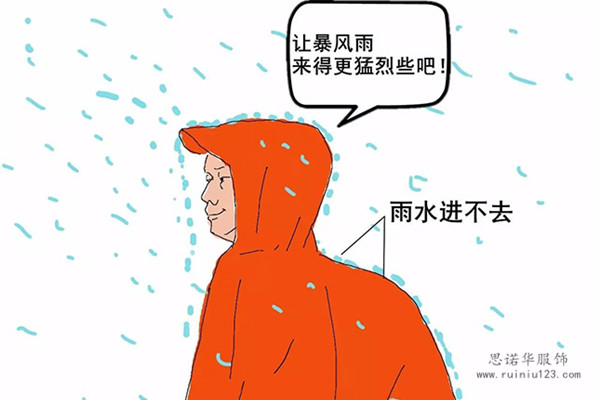雨衣防水——在以前,如果登山時遇到下雨,登山者只能穿上雨衣。雨衣表面光滑封閉,雨水根本進(jìn)不去,所以可以防雨。