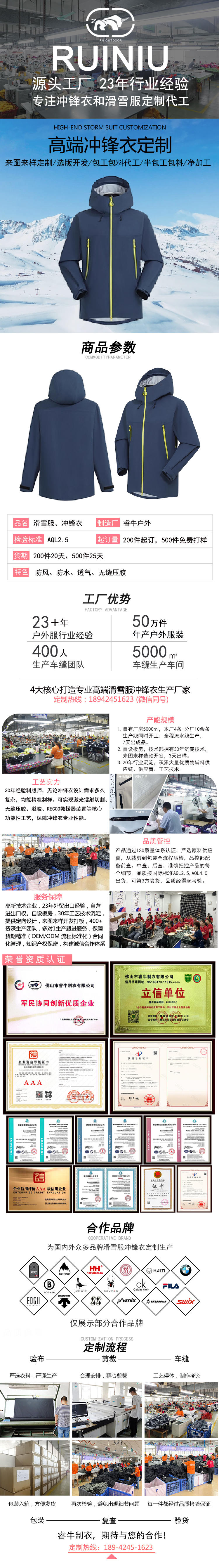 持續(xù)23年專注沖鋒衣、滑雪服定制加工廠家
