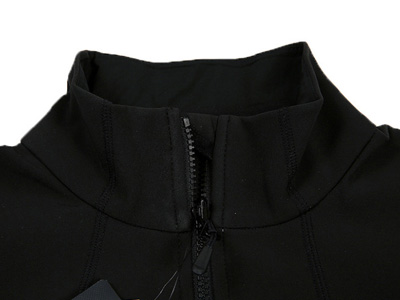 衣領(lǐng)設(shè)計(jì):軟殼沖鋒衣衣領(lǐng)拉鏈頭處使用三角片防護(hù),有效防止頸部被拉鏈刮傷。