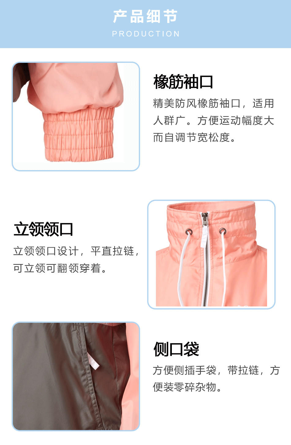 橡筋袖口:精美防風(fēng)袖口,使用人群廣,可根據(jù)定制設(shè)計,專業(yè)風(fēng)衣生產(chǎn)代工廠家。