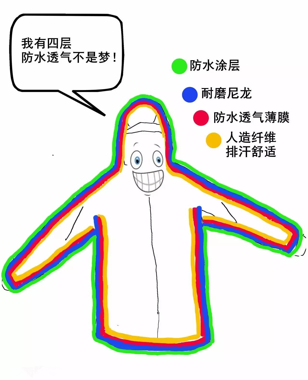 [導(dǎo)讀]:之前的文章跟大家說(shuō)過(guò),真正意義上的沖鋒衣其防水透氣性能,主要依靠多層的結(jié)構(gòu)保護(hù)薄膜。那么這多層的薄膜結(jié)構(gòu)是怎樣的呢?今天,20年經(jīng)驗(yàn)的沖鋒衣生產(chǎn)代工廠家—思諾華服飾給你剖析其中的薄膜結(jié)構(gòu)。