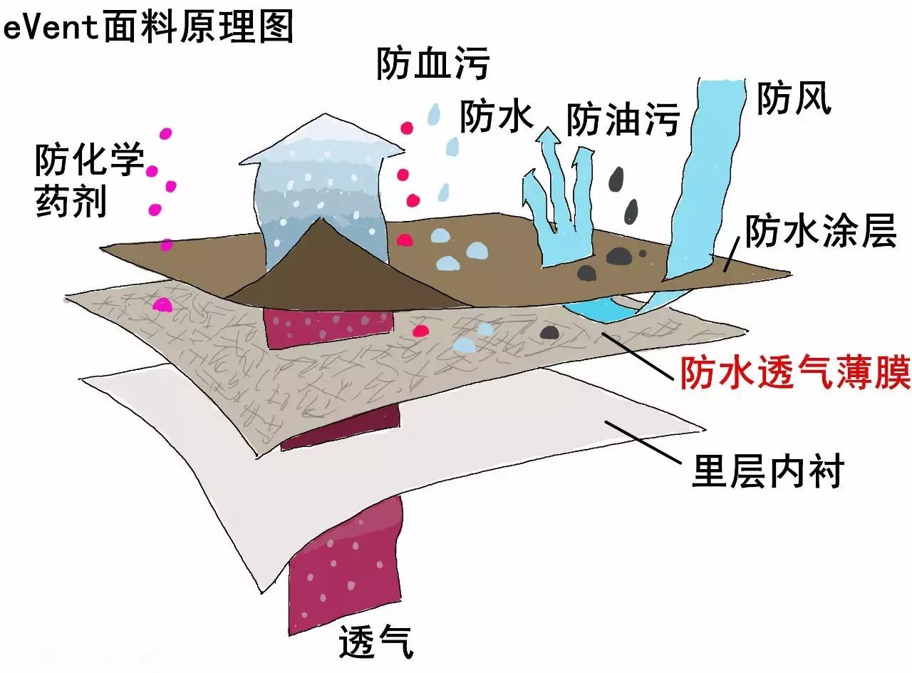 伊文特(eVent)面料原理示意圖。