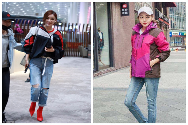 而最近大牌對(duì)沖鋒衣的熱愛(ài)貌似越來(lái)越深。春季出游照中,闞清子和袁姍姍分別都選擇了同款不同色的沖鋒衣配白T流行的搭配,休閑運(yùn)動(dòng)卦的沖鋒衣里面搭配最簡(jiǎn)單的T恤絕對(duì)是最省事也是最不會(huì)出錯(cuò)的搭配。請(qǐng)看看圖片這樣的穿搭是不是好看又簡(jiǎn)單: