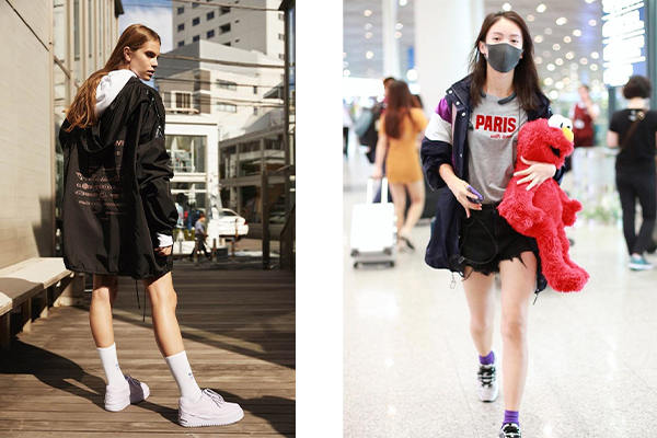 這是滿(mǎn)常見(jiàn)的一款,但同時(shí)也是最具風(fēng)格性的。在普通的穿搭,只要套上透明雨衣式的沖鋒衣,都可以化腐朽為神奇!利用內(nèi)搭上衣來(lái)避免撞衣的窘境,如圖左整套式的透明搭配,以頭跟腳的黑色配件來(lái)強(qiáng)化對(duì)比;圖右則是在亮橘色的衛(wèi)衣外,罩上透明黑邊的沖鋒衣,點(diǎn)亮了原本較單調(diào)的穿搭;圖中的下身選擇簡(jiǎn)單的五分短褲,加以凸顯上半身的半透明沖鋒衣之特色。